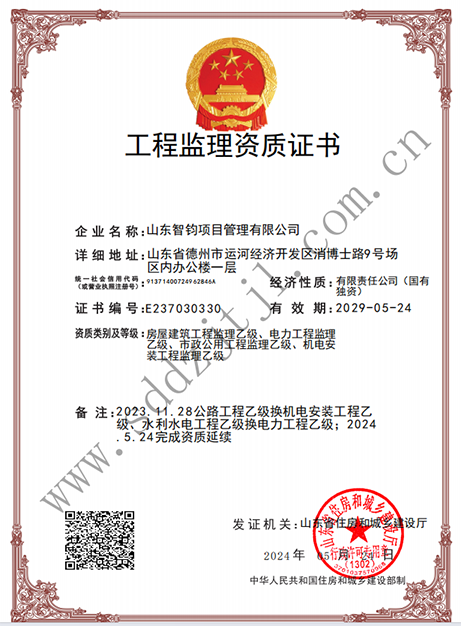 房屋建筑工程監(jiān)理乙級(jí)、電力工程監(jiān)理乙級(jí)、市政公用工程監(jiān)理乙級(jí)、機(jī)電安裝工程監(jiān)理乙級(jí)資質(zhì)