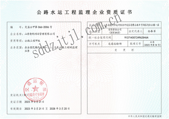 交通運(yùn)輸部公路工程監(jiān)理甲級(jí)資質(zhì)